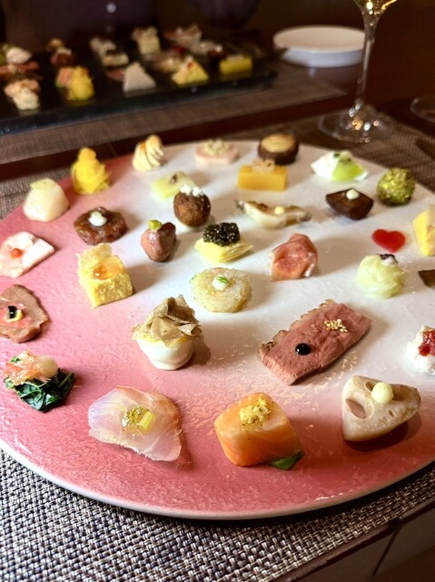 有田焼の器に美しく盛り込まれた“30品の前菜”。