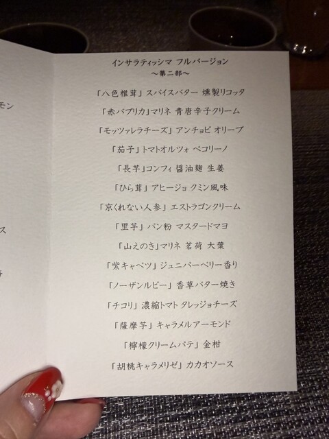 第1部・第2部に分かれ、メニュー表の順番通りにいただきます。