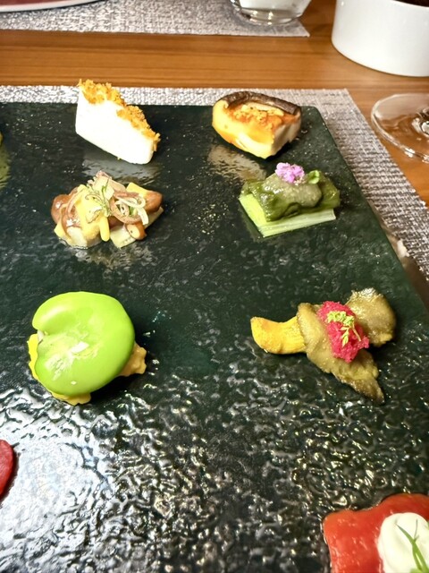 など、ひと口ごとに世界観が変わる前菜が続き...