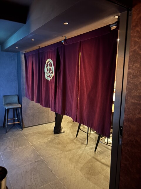 入り口から地下に降りると、バーカウンターのスペースがあり、その奥にひっそり佇むお店。