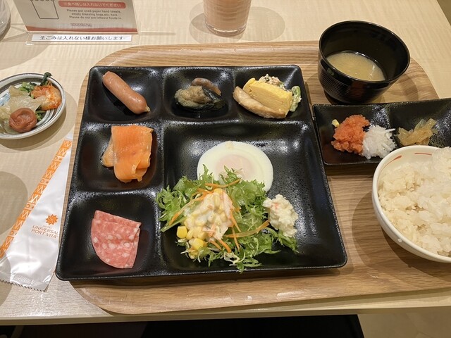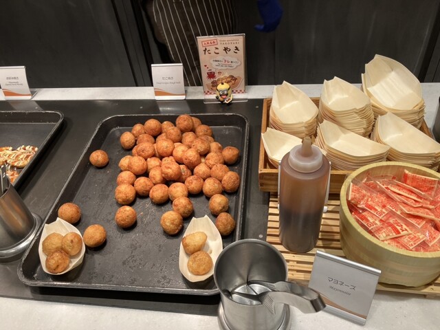 今回はホテルに宿泊して朝食にコチラを利用させていただきました。初めて利用したのですが、朝から大阪を感じられるタコ焼き、ミニお好み焼きなどありインバウンドや地方から来た人は喜ばれるだろうと思いました。後、USJの近くなのでファミリー利用も多いからキッズ 向けのビュッフェコーナーも工夫されていて良いと思いました。