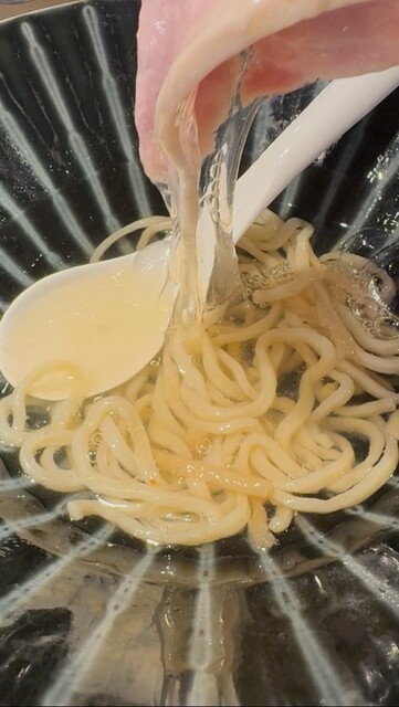麺を持ち上げて、気泡を作ります。気泡が出来ると風味が増します。まずはそのまま、すすります。