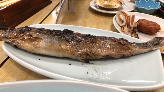 旅行社から勧められて伺ったのですが、わたしは「特大ほっけ焼きスペシャル(特大ほっけ焼き定食プラス刺身盛り合わせ)」を注文し、こどもは「イカ焼き定食」「ホタテ焼き定食」を注文。焼き魚、刺身ともレベル高い!