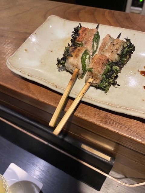 せせりは程よい弾力で、炭の香りも相まってとーても美味しかった。春菊とチーズの組み合わせも最高だった。