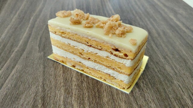 シンプルに素材の美味しさを感じるケーキ、ココナッツ、ココナッツのムースとビスキュイというシンプル中のシンプル、卵と乳成分と糖の旨味のサクッとしたビスキュイにムースココナッツの香りと旨味がバランス良く滋味な旨味