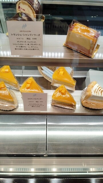 マンゴーの華やかな甘みの酸味に爽やかなライムの香りと酸味、スッキリした甘みと酸味で夏らしい軽やかな風が吹き抜けるサッパリ感が気分爽快なガトー