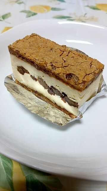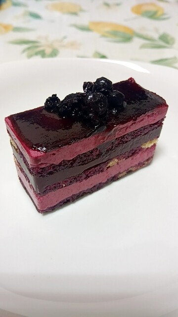 プルーンの華麗な酸味と香りがチョコレートのしっかりと香るような豊潤な風味、ヘーゼルナッツの香ばしさの上で華やかに登り上がり気持ち良い切れ味、ホワイトチョコレートとバニラのムースが濃厚な旨味とコクが香りと風味を包み込み美味しさに変換、洋酒と共に後味余韻も素晴らしいケーキ