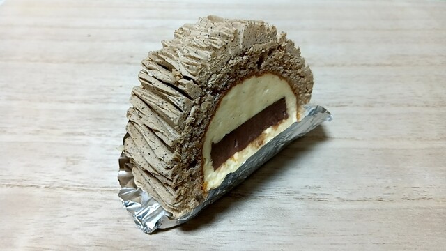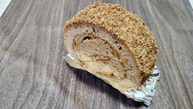 ビュッシュロン型のロールケーキのようなシナモン尽くしのケーキ、シナモンは好きではないですが、バランス良い嫌味にならないレベルの香り高さ、ナッツの香ばしさにシナモンの妖艶な微睡む香りが絶妙に後引く中毒性、シナモンの香りに誘われる気持ち良い香りのケーキ