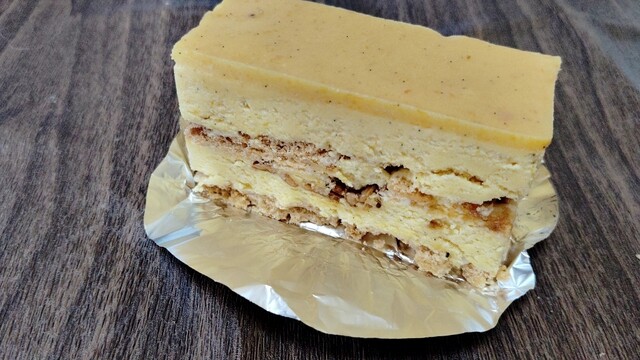 自分は好きではないかぼちゃのケーキですが、かぼちゃの滑らかな甘みと美味しさにフィーチャーした素晴らしい作品、とろっとふんわり滑らかな食感に自然で豊満な膨らみのある濃厚な甘み、甘めながらも嫌みがなくかぼちゃの気持ち良い甘みが脳天を突き刺すサクカリ食感の生地とのコントラストも素晴らしく、カスタードよりも濃厚な風味と甘みが美味しいかぼちゃのケーキ