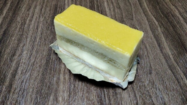 マンダリンオレンジのムースリーヌ2種類にジュレ、ブリオッシュにボトム生地の構成、マンダリンオレンジの弾けるような甘みと酸味にブリオッシュの小麦の香りが美味しい、まろやかムースリーヌにオレンジ感強めのムースにジュレとマンダリンオレンジの太陽を感じるような弾ける甘みと酸味の再現度が凄い、ブリオッシュの香ばしい小麦の香りにオレンジが包みこまれ太陽を感じる衝撃的な幸福の味わい、ここまでシンプルにオレンジとブリオッシュを活かしたケーキはこのケーキだけ、前回のブリオッシュのケーキはブリオッシュそのままに近い感じで、今回はマンダリンオレンジに合わせて水分を含んだしっとりブリオッシュだったのが◎