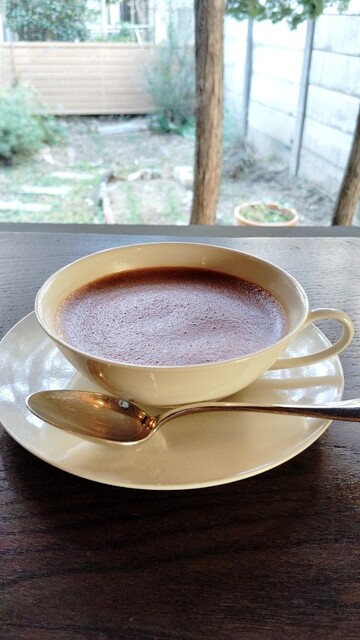 蕪木出身の店主さんの全国トップレベルのホットチョコレート、ドミニカ70%ボディのしっかりした濃厚で力強さに苦味酸味発酵味のバランス良い香り高さ、突き抜けるカカオに穏やかな音楽に自然の風景、谷根千