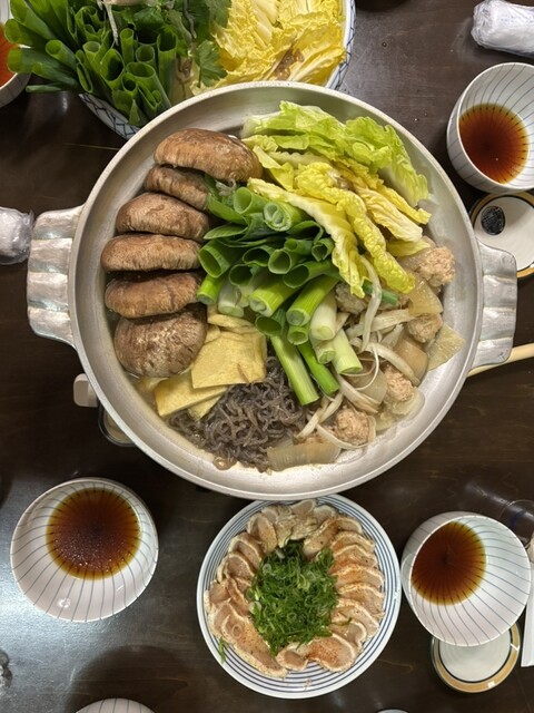 鶏団子、鶏肉といっしょにお野菜、こんにゃくがたまらなく美味しいしずっと美味しい。