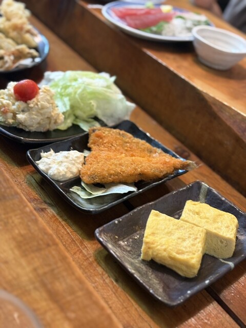 今回は前回のリベンジをかけ、娘2人と訪問。今回はバッチリだし巻き卵を注文することができ満足。この他にも大好きなメニューのひとつに「ポテトサラダ」があり、いつも2つ注文してしまいます。家から歩いて2〜3分なのでよく行くのですが、今回はアジフライなどビールに合うもの中心に美味しくいただきました。