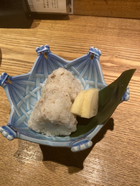 他に、白エビ唐揚げ、ホタルイカ唐揚げ、バイ貝刺身など、日頃食べることができない料理を堪能しました。締めはミョウガのおにぎりで、お腹いっぱいです。