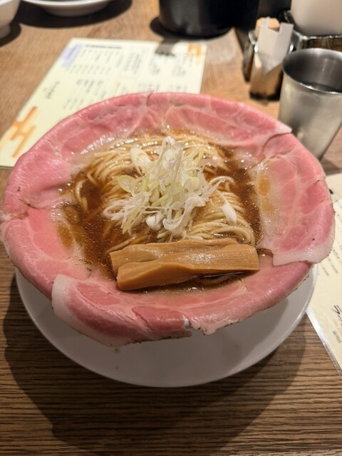 そして主役のチャーシュー=ピストル!柔らかくてジューシー、噛むたびに肉の旨味がじわっと広がる。脂の部分も甘みがあって、肉の存在感が強い。枚数が選べるシステムがあるなら、それ使ってめいっぱい肉で攻めたいくらい。