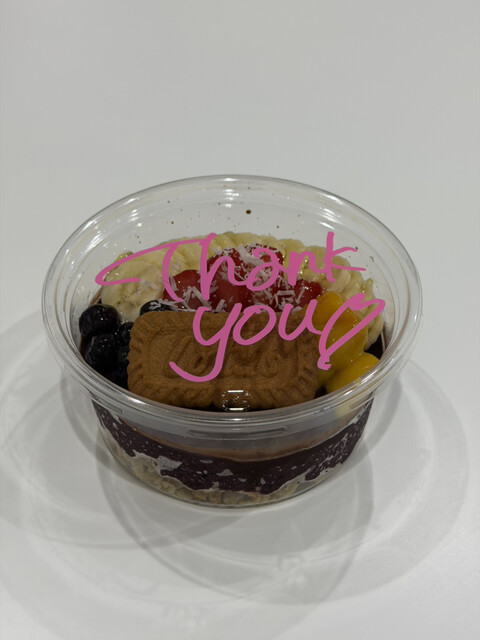 Sサイズを頼んだけど、全然少なくなくてしっかり満足感あり。軽いおやつにも、デザートにもぴったり。味も見た目も大満足で、組み合わせを変えてまた食べたくなるアサイーでした!次はホワイトチョコ×パイナップル×キウイで試してみたい!