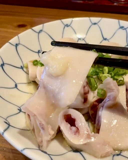 おろしにんにく付けて食べるともう酒が消える。パツんと歯切れの良い食感もクセになる。