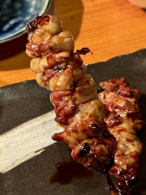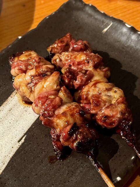 串焼きが特に美味しくて、塩ならハツ、タレならレバーとハツモトがおすすめです。