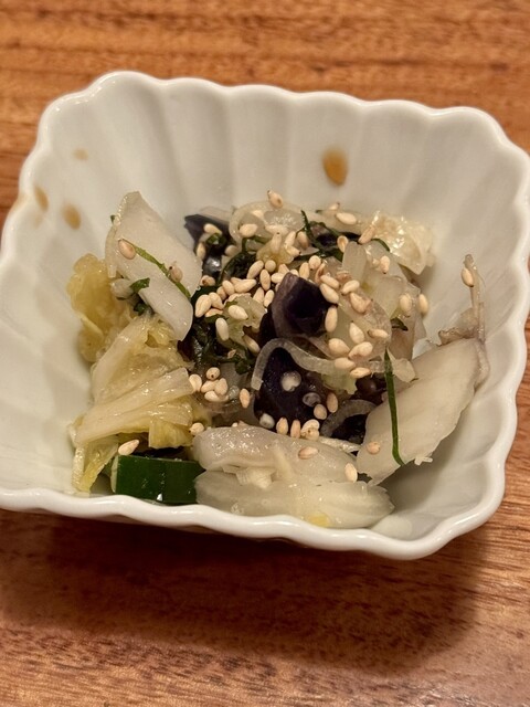 身が重なった部分はごま油が行き渡っておらず、淡白さが目立つ。