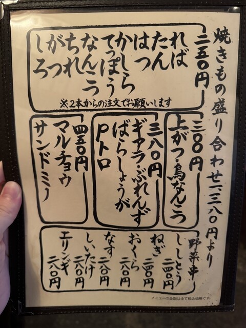 のどまわりなど串の用意が少ない部位は、テーブル上のメニューに記載がない。