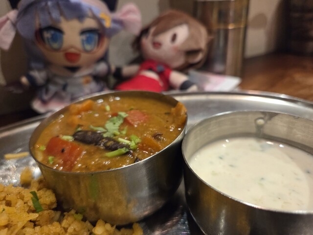 サンバルも水分結構飛ばすんだね、って思って見返したらアヴィアルだったw野菜と豆のココナッツ煮 マスタードシードとクミンとコリアンダーリーフとカレーリーフ 野菜の滋味深い味わいがインドの(みそ)汁、おふくろの味であり汁っけ強いサンバルより日本米にもこれあうよ、好きだわ 野菜は丸ナス?とか人参パプリカあたり