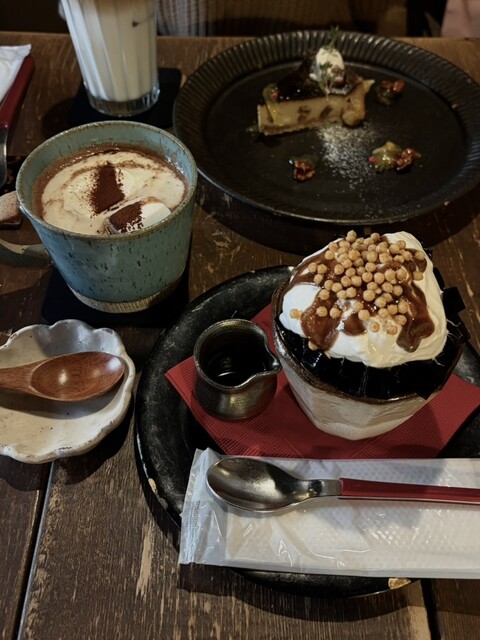 きなこパンケーキは上に濃厚なクリームがかかっていて、パンケーキ自体外はカリカリ...