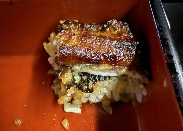 しかし、うなぎ自体の品質も去ることながら、やはり焼きの妙義とタレの旨味がうなぎの味を引き立たせている。地焼きで、炙りは強いが丁寧。焦げが絶妙に旨味に変化している。皮目もパリッと身はふっくらと柔らかく脂もほどよく載っている、、やはり旨い!
