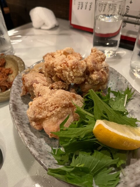 終盤には、舞茸・鶏肉・玉ねぎの揚げ物をハイボールとともに。中でも玉ねぎは甘みが強く、驚くほど美味しかったです。