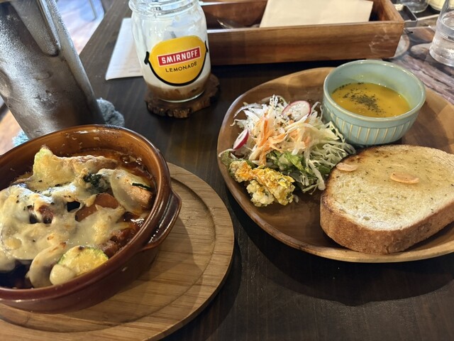 レッドグラタンのサラダ、スープ、ドリンクセットで(ウインナー珈琲変更)をいただきました✨