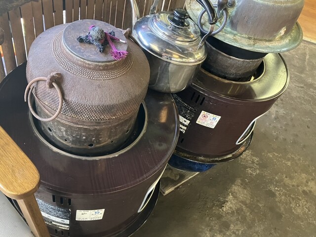 サービスの鉄瓶で淹れてくれたお茶と