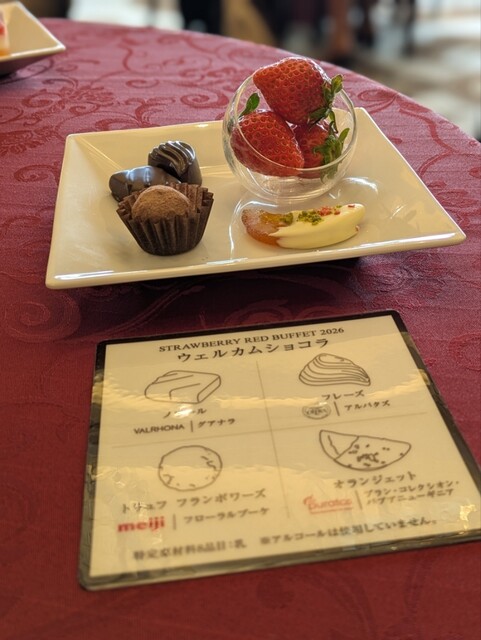 内容的には苺をゴリ押す大阪近辺のホテル系スイーツビュッフェとは違い、チョコレートを主軸に要所要所で苺を感じられるメニューが多いように感じられました。