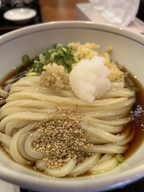 今日は定休日だよなぁと諦めていたらバスから白無地の暖簾が下がってるのが確認出来、作業の合間にぶっかけ大盛を。いつもながらの腰強の極上の麺。そして、出汁の効いたつゆを適度に飲みます。隣の若衆達は天かす大好きと言って何杯も掛けて食してます。まぁ、旨いから良いよね〜。