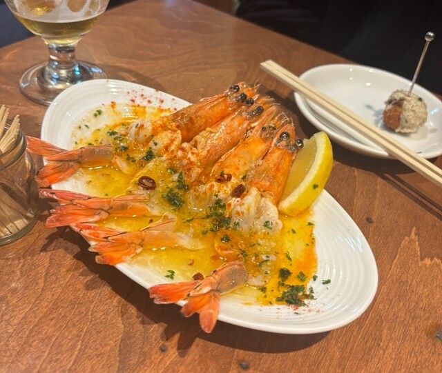 海老のアヒージョがとっても美味しかったです!身の部分もおいしく食べられました