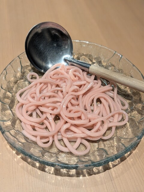 締めの梅うどんはほんのり梅の香りで後味すっきり。最後まで重たくならず楽しめました。