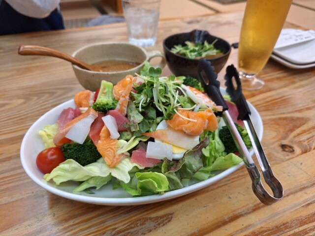 よくシェフの気まぐれサラダってありますけど、和食亭かどいさんのサラダは海鮮がいっぱい入ってて、板さんにはずっと気まぐてて欲しいわと思うくらいです。