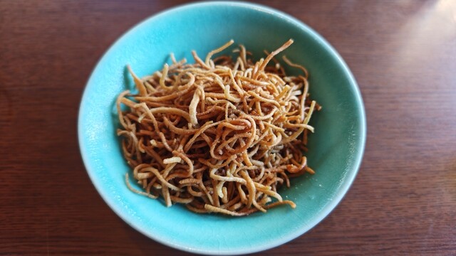 蕎麦を揚げたやつ。見た目はベビスターですが味は