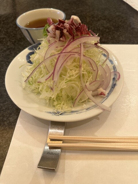 定食には、ご飯、サラダ、お漬物、赤だしがあり赤だしに粒々した食感があったので何かなと思ったらタピオカでした。ご飯とサラダはおかわりできますがお腹パンパンでしたのでおかわりせず食べ終わりました。他には無いような工夫があって楽しい食事でした。