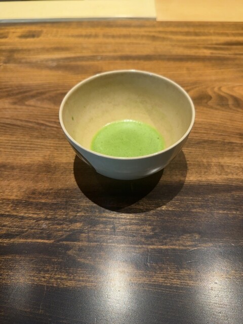 仕立てて貰ったばっかりの温かい抹茶。渋みがあります。