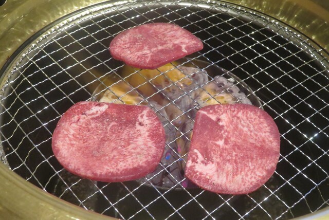 いつものオーダーパターン、タン塩・ハラミ・ロース・カルビ、サラダ・サンチュ・オイキムチ、豚ホルモン・レバー・子袋、ハツ刺し・ハラミ定食・冷麺、飲物は生ビール・烏龍茶、等々を注文。今夜は孫の希望で特上ハラミも頼んじゃいました。