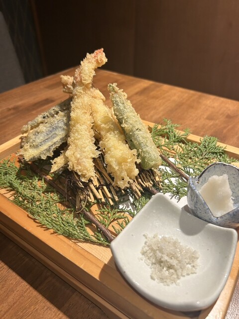 ズワイ蟹と季節野菜の天ぷら盛り合わせ