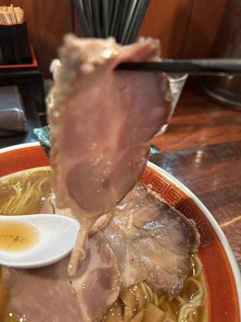 薄切りチャーシューは乗せる前に軽く炭火で熱を加えるひと手間