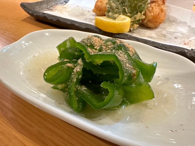 お刺身、きなこ豚塩焼き、ホタルイカ沖漬け、ごまさば、鯵フライ、ピーマンの漬物、蓮根、くじら、など頂きましたが、全てが素晴らしい程に丁寧な味付け。
