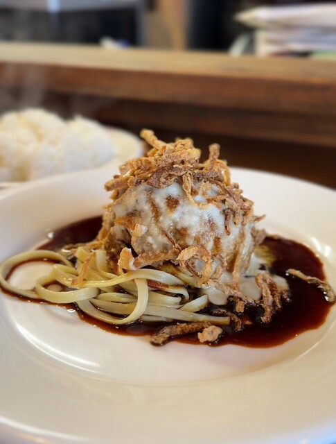 サラダ、スープ、ハンバーグ、ライス、コーヒーがついて1800円。