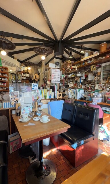 『珈焙屋』。個性的過ぎる店内には、本やらコーヒーの道具、ジャムなどが所狭しと並んでいる