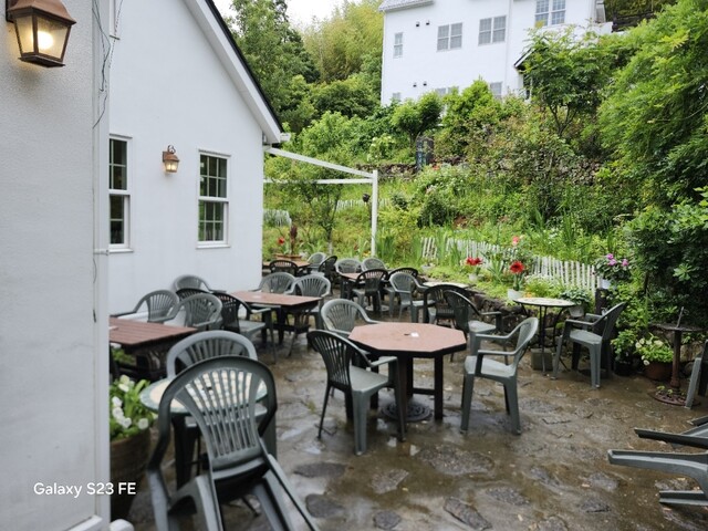 海辺のちょっと小高い位置にあるお店なので窓からの景色も良し。晴れていたらテラスでお食事する人も多いですが今日は小雨だったので店内席にてネコパフェをいただきました。