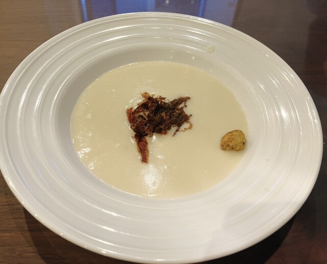 調布駅近くのホテル内にあり、東口改札から出ると近いです。ランチ予約不可ということで、開店の11時半には着くようにしたのですが、すでに行列ができており、最後の一組で入店することができました。運がよかったです。