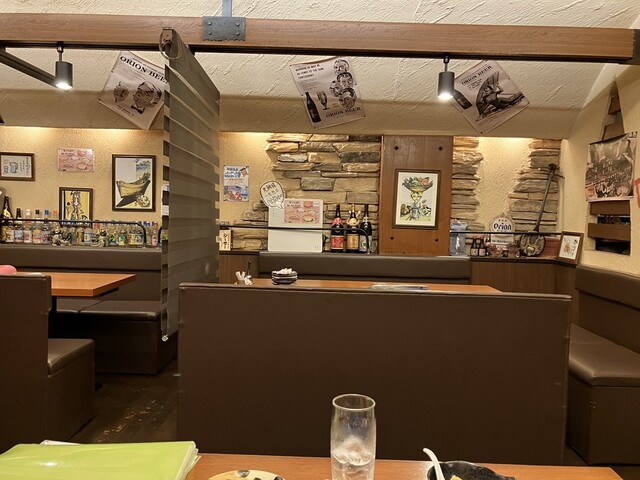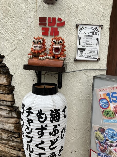 ホテルストレータ近くの居酒屋。本日何度目かのスコールの中、ホテルで傘借りて初訪問。我等は呑兵衛なので飲み放題…泡盛残波白、水割り等…私が濃いめ。残念ながらグルクン刺身は入荷なしの為、食べれず。ヤギ刺身は去年宜野湾で実食済みなので注文せず。イカ墨ソーメンチャンプルー!イカ墨好きな夫、絶対食べるでしょ!お箸真っ黒になりました。後半に食べたジーマミー豆腐の春巻き、ラフテー炒飯、美味かった!