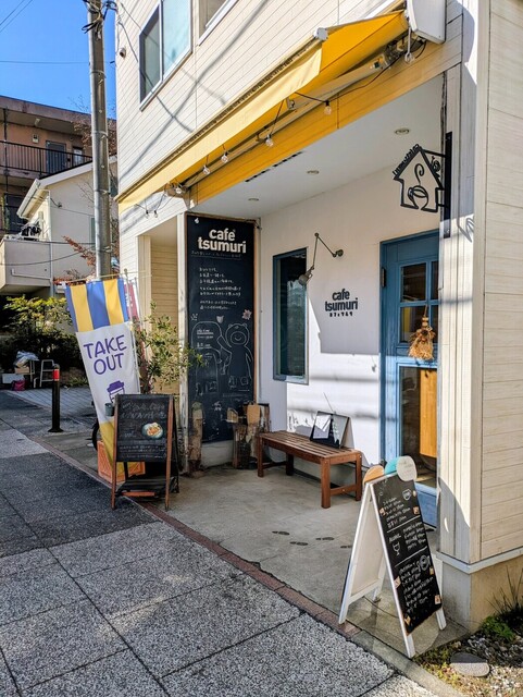 信号を渡ってすぐの場所にある、鮮やかな「青いドア」が目印の「カフェツムリ」さんに伺いました。