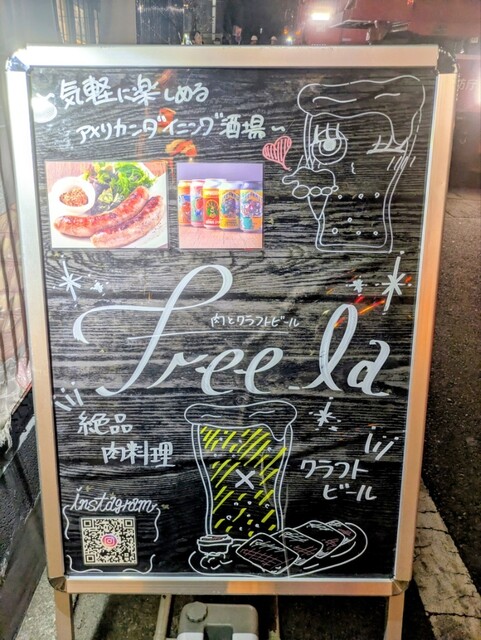 メイン通りから少し入ったところにある、お洒落なネオンサインと「Free.la」と筆記体で書かれた階段が目印のお店です。