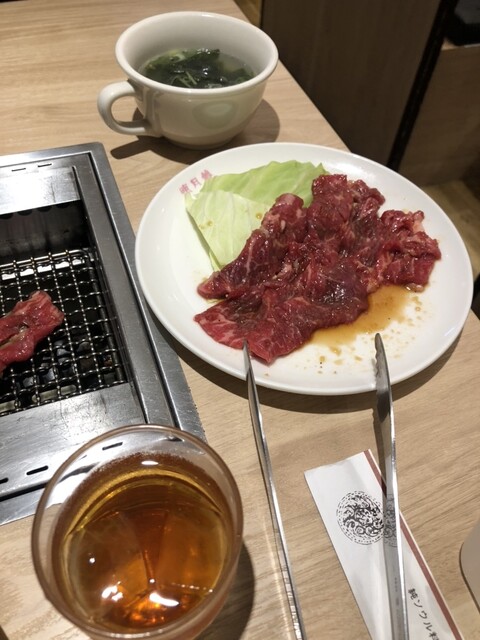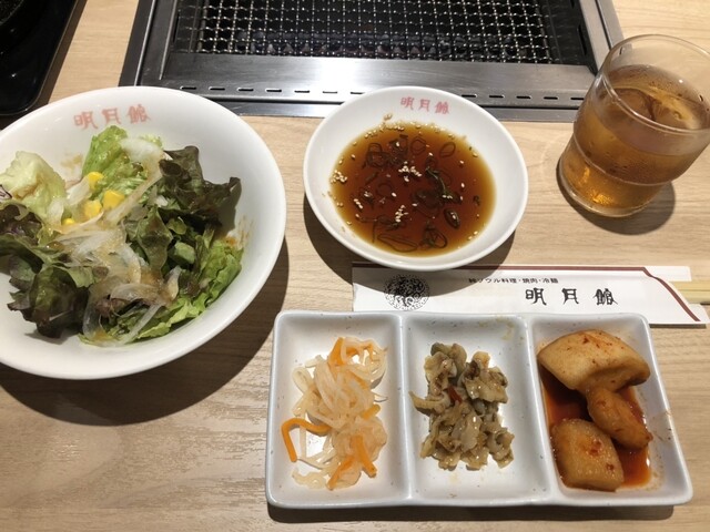 京橋駅近くで、コスパ良くて、ランチできるとこないかなたどりついたのが明月館の焼肉の看板がロースランチ1100円ご飯多めにして頂きました!